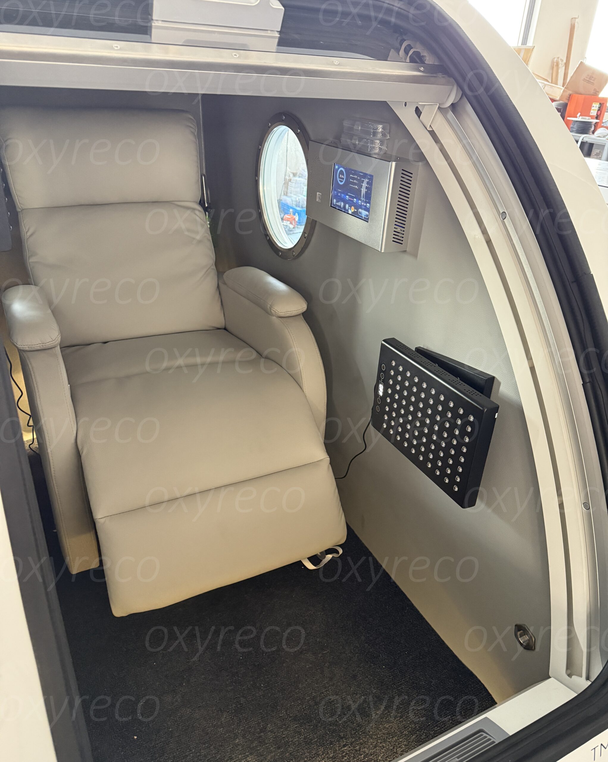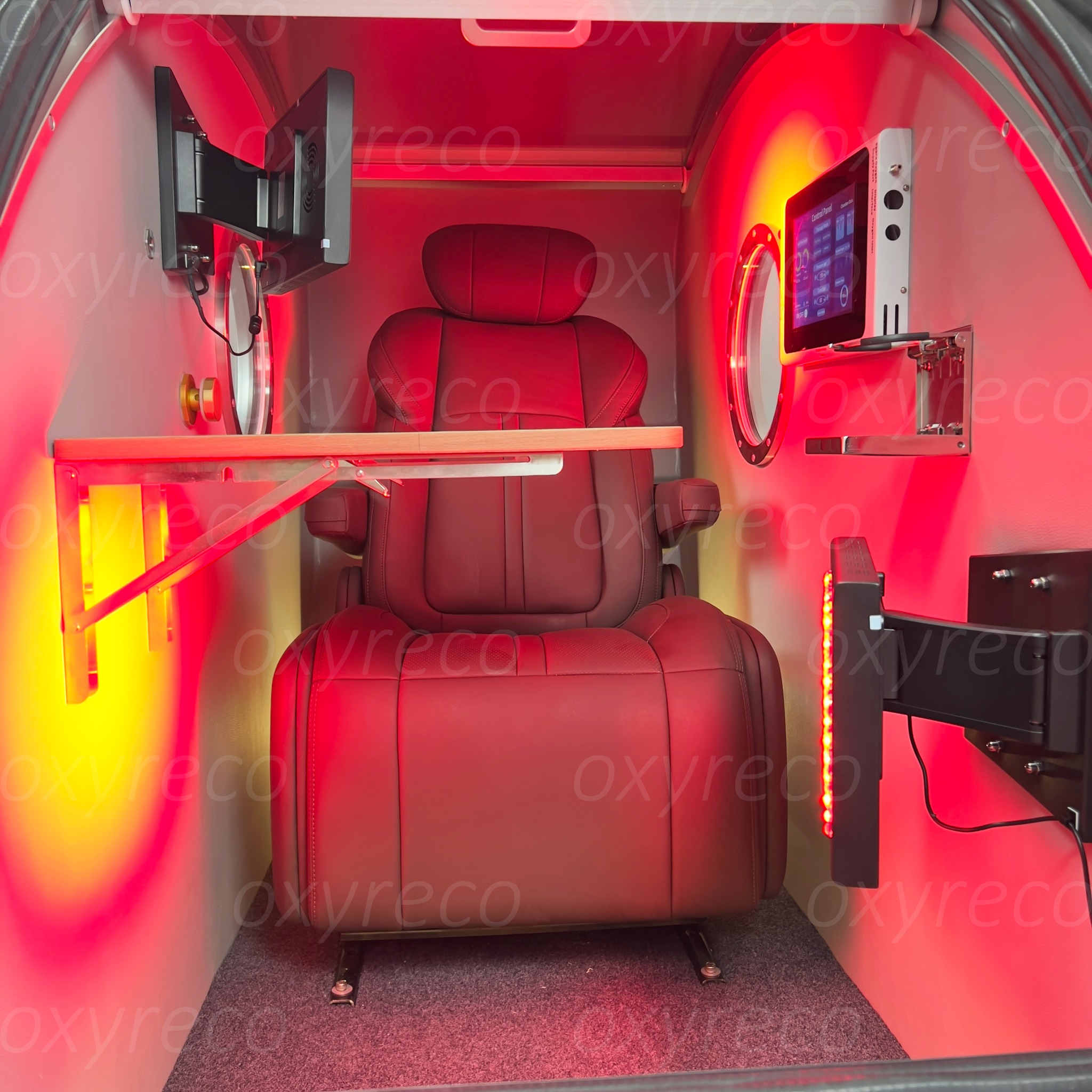 Configuration: Single self-adjusting sofa, air conditioning, Intercom system ,internal &external touch screen , Water-cooled air conditioning